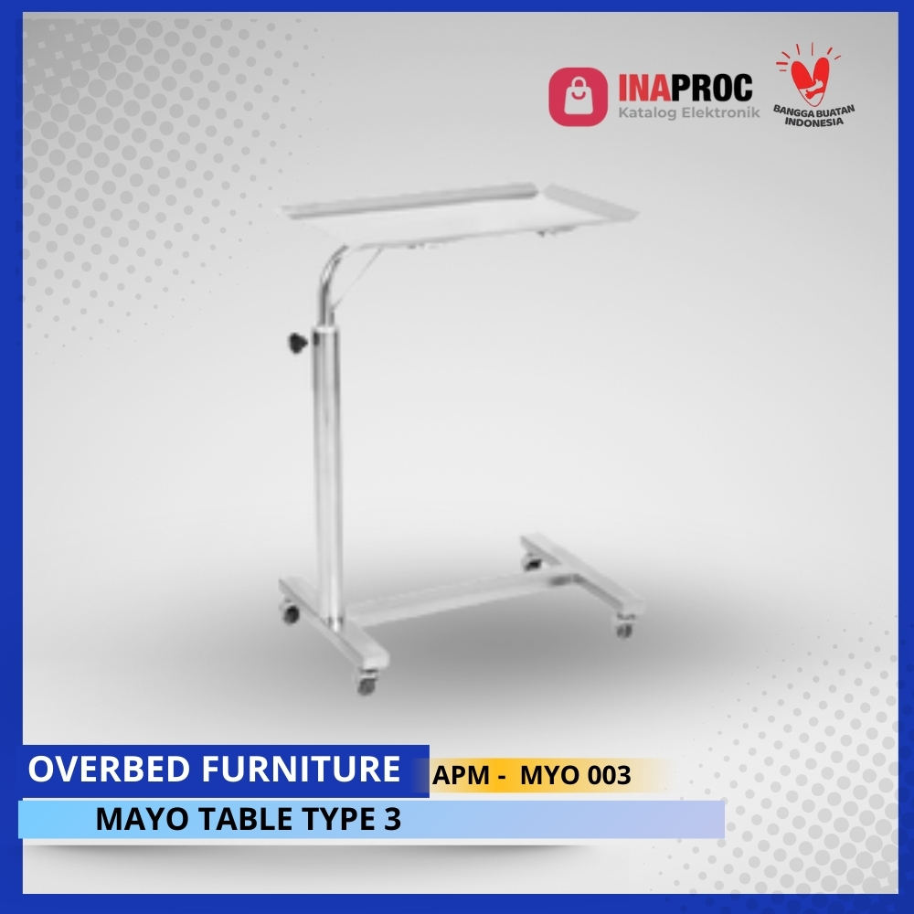 Mayo Table Type 3 dilengkapi dengan mekanisme pengaturan ketinggian yang presisi dan halus, permukaan meja berbentuk baki dengan tepi pengaman, serta roda medis heavy duty dengan sistem pengunci untuk memastikan keamanan saat penggunaan. Desain ergonomis dan modern membantu meningkatkan efisiensi kerja serta kenyamanan tenaga medis.